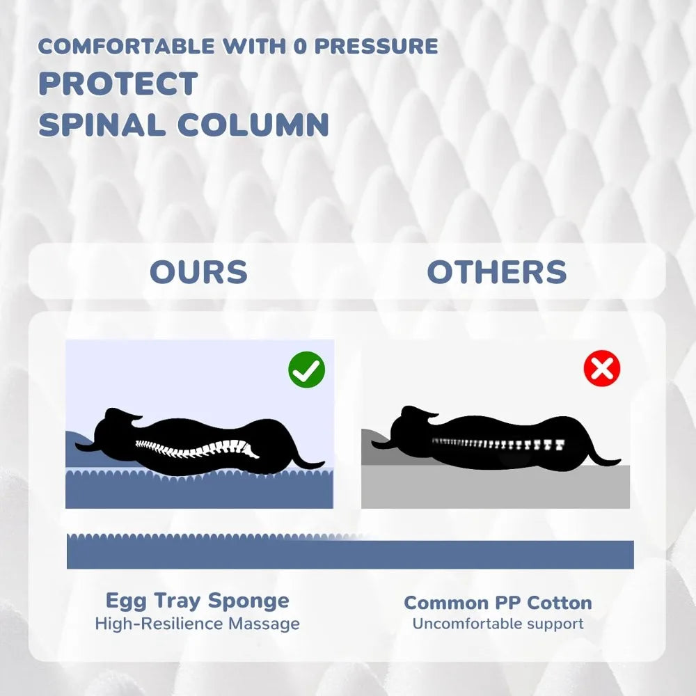 - Memory-foam egg-crate core cradles joints and evenly distributes weight, helping your large dog rest peacefully.