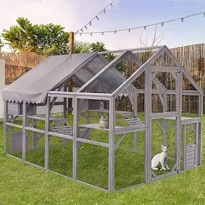 - Weatherproof roof and sturdy wood construction shield against sun and rain, delivering a durable, modern cat enclosure you can enjoy in your garden.