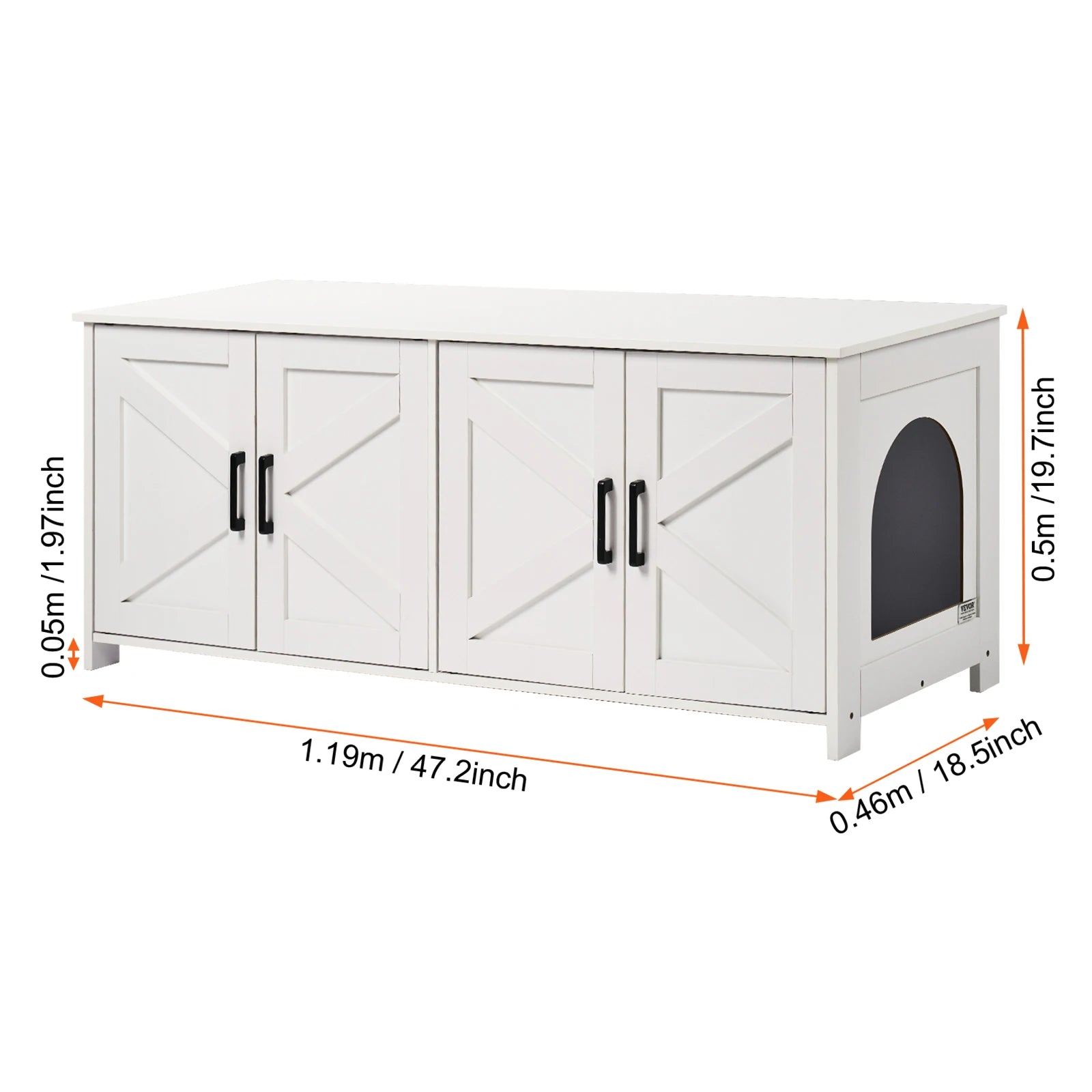 - Spacious entry and access: 4 doors and 2 windows offer easy access for your cat; interior measures 47.2 x 18.5 x 19.7 in and fits litter boxes up to 21 x 17.7 in.