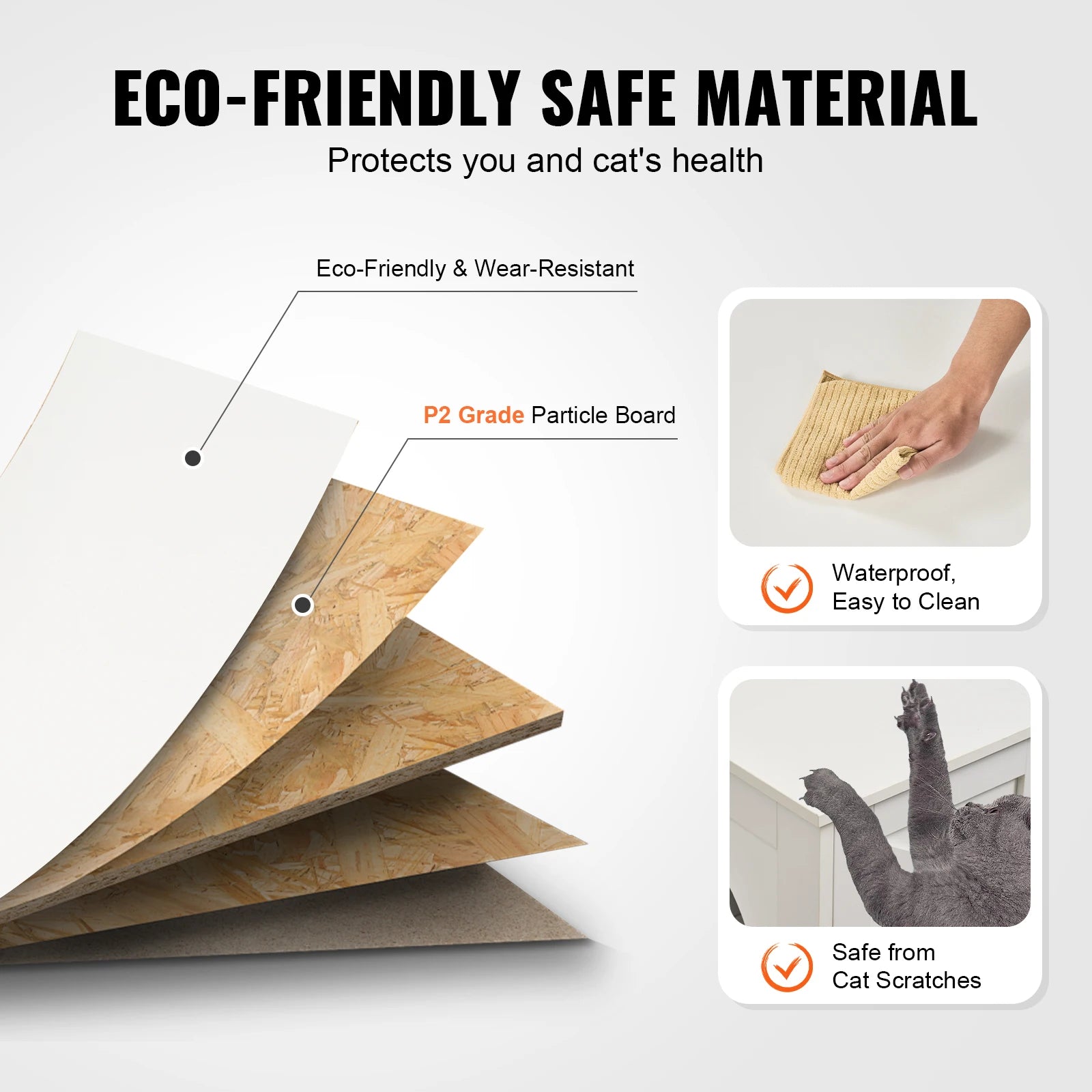 - Discreet, fresh: hides the litter box while keeping the air fresh with a durable, waterproof finish on P2-grade particle board and safe, chemical-free materials.